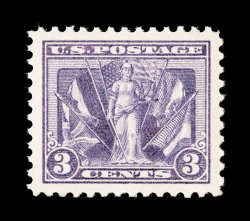 364 nhu 537 image#537, 3c Victory, a breathtaking mint single, possessing not only remarkably wide margins all around, but it is absolutely perfectly centered within these impressive borders, brilliantly fresh color on pristine white paper, immaculate o.g., n.h., superb; a "one-in-a-million" gem that has been awarded the ultimate grade - Gem 100 Jumbo - by the PSE, the sole such example in their population report for #537, in fact there are not even any "normal" Gem 100's in their report; 2007 PSE certificate (Gem 100 Jumbo; SMQ $600.00 for 98, not priced in this stunning grade). (Image) $20.00