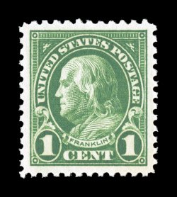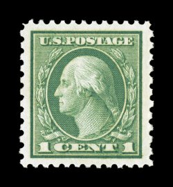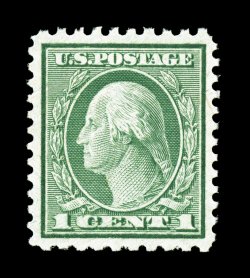 368 nhu 542 image#542, 1c Green coil waste, perf. 10x11, exceptionally well centered within large margins, exceedingly bright and fresh, o.g., n.h., extremely fine; 2004 PSE certificate (XF-Superb 95; SMQ $360.00). (Image) $35.00
