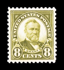 380 nhu 560 image#560, 8c Olive green, a highly desirable mint example of this difficult value, extraordinarily well centered within large margins, rich luxuriant color and a crisp detailed impression, pristine o.g., n.h., an extremely fine gem; 2002 PSE certificate (XF-Superb 95; SMQ $690.00). (Image) $105.00