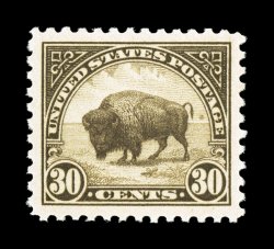 389 nhu 569 image#569, 30c Olive brown, extraordinarily well centered and margined, deeply rich color and a highly detailed impression, o.g., n.h., tiny natural paper inclusion, extremely fine; 2004 PSE certificate (XF-Superb 95; SMQ $500.00). (Image) $65.00