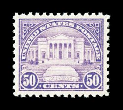 391 nhu 570 image#570, 50c Lilac, marvelously well centered within uncommonly large margins, attractive color, o.g., n.h., extremely fine; 2006 PSE certificate (XF-Superb 95; SMQ $660.00). (Image) $100.00