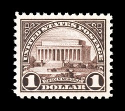 395 nhu 571 image#571, $1.00 Violet black, extraordinarily well centered within large margins, deep rich color and a well incised impression, o.g., n.h., extremely fine; 2006 PSE certificate (XF-Superb 95; SMQ $630.00). (Image) $95.00