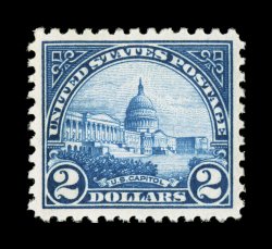 396 ogu 572 image#572, $2.00 Deep blue, extraordinarily well centered within exceedingly large margins, remarkably deep color and impression, o.g., lightly hinged, extremely fine gem; 2007 PSE certificate (Superb 98 Jumbo; SMQ $365.00 for 98). (Image) $80.00