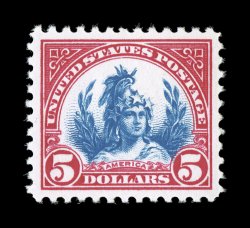 400 nhu 573 image#573, $5.00 Carmine and blue, premium mint single, brilliantly fresh, deep rich colors, excellent centering, o.g., n.h., extremely fine gem; 2007 PSE certificate (XF-Superb 95; SMQ $880.00). (Image) $240.00