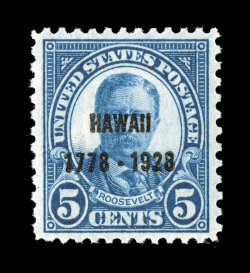 441 nhu 648 image#648, 5c Hawaii ovpt., exceptionally well centered, deep intense color and impression, o.g., n.h., extremely fine; 2007 PSE certificate (XF-Superb 95; SMQ $220.00). (Image) $21.50