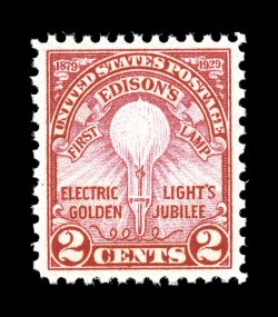 442 nhu 655 image#655, 2c Electric Light Jubilee, outstanding centering, strong rich color, o.g., n.h., an extremely fine gem; 2007 PSE certificate (Superb 98; SMQ $330.00); the highest grade the PSE has assigned to this stamp. (Image) $0.90