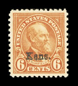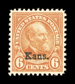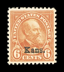 450 nhu 664 image#664, 6c "Kans." ovpt., exceptionally well centered and margined, wonderfully bright and fresh, o.g., n.h., extremely fine; 2007 PSE certificate (XF-Superb 95; SMQ $640.00). (Image) $55.00