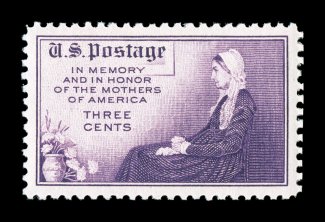 481 nhu 738 image#738, 3c Mothers of America, excellent centering within large margins, strong color, o.g., n.h., extremely fine; 2007 PSE certificate (Superb 98; SMQ $130.00). (Image) $0.20