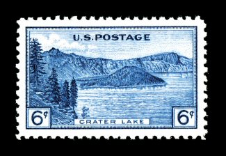 484 nhu 745 image#745, 6c Crater Lake, precisely centered within large margins, deep rich color, o.g., n.h., an extremely fine gem; 2007 PSE certificate (Superb 98; SMQ $200.00). (Image) $1.60