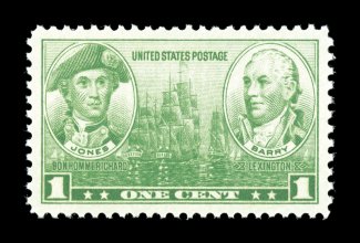 485 nhu 790 image#790, 1c Navy, mathematically precise centering within large margins, brilliant color, pristine o.g., n.h., superb; 2007 PSE certificate (Gem 100; SMQ $400.00); this is the sole example in the PSE population report to receive the coveted Gem 100 grade, the highest awarded to this stamp. (Image) $0.25