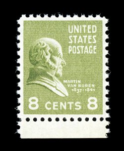 487 nhu 813 image#813, 8c Olive green, handsome bottom sheet-margin single, extraordinarily well centered and margined, rich color, o.g., n.h., extremely fine gem; 2007 PSE certificate (Superb 98; SMQ $215.00). (Image) $0.35