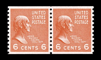 493 nhu 846 image#846, 6c Red orange coil, lovely mint pair, gorgeous rich color, extraordinarily well centered, o.g., n.h., extremely fine gem; 2007 PSE certificate (Superb 98; SMQ $175.00); the highest grade awarded to this stamp, being one of only three pairs so graded. (Image) $2.25