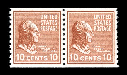 494 nhu 847 image#847, 10c Brown red coil, mint pair, remarkably well centered and margined, bright fresh color, o.g., n.h., extremely fine gem; 2007 PSE certificate (Superb 98; SMQ $250.00). (Image) $24.00