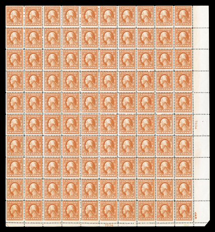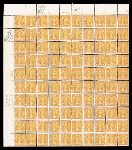 540 og/nhbl 562 image#562, 10c Orange, plate no. 14229 pane of 100, signed three times in the margin including Postmaster General Hubert Work, deep vibrant color, o.g., n.h. except bottom right stamp hinged, fine-very fine. (Image) $4,130.00