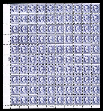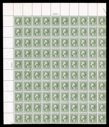 532 nhbl 536 image#536, 1c Gray green offset, plate no. 10052 pane of 100, with wide sheet selvages, includes several well centered stamps, strong rich color, o.g., n.h., overall a very fine example of this elusive sheet. (Image) $5,150.00