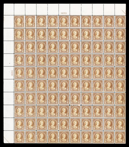 537 nhbl 556 image#556, 4c Yellow brown, plate no. 16213 pane of 100, lovely rich color on fresh white paper, o.g., n.h., fine-very fine. (Image) $4,270.00
