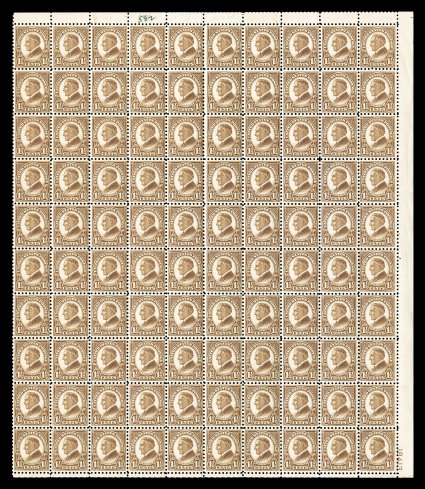 #582, 1 1/2c Brown, plate no. 18413 pane of 100,