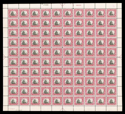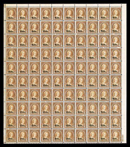 100, strong rich colors, o.g., n.h., a fine set of sheets. (Image) |