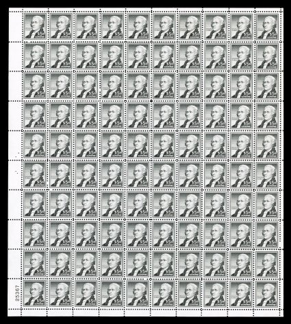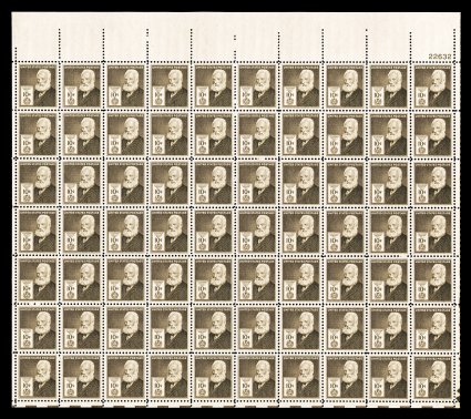565 nhbl 859-93 image#859-93, 1c-10c Famous Americans cplt. in panes of 70, strong colors, includes many well centered stamps, especially the key #893 which has some gems, o.g., n.h., trivial perf. separations on #866 (3c value), fine-very fine set of sheets. (Image) $2,336.15