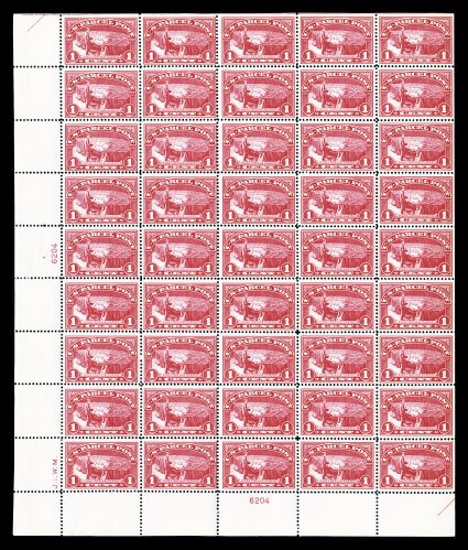 574 nhbl Q1 image#Q1, 1c Parcel Post, plate no. 6204 pane of 45, vibrant color, o.g., n.h., fine-very fine. (Image) $822.00
