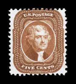 41 og 42 image#42, 5c Orange brown reprint, without gum as issued, well centered and margined for this value, brilliant luxuriant color on bright paper, choice very fine; only 878 sold; 2006 PF certificate. (Image) $1,400.00