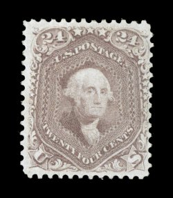 45 og 70a image#70a, 24c Brown lilac, an exceptionally fresh and choice mint example of this notoriously difficult and challenging stamp, possessing a wonderful overall freshness, with rich bright color, plus its impression is well incised on crisp paper, attractively centered, especially compared to most copies one finds, clean full o.g., lightly hinged, very fine; 2006 PF certificate. (Image) $2,750.00
