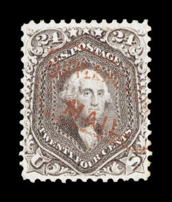46 O 70a image#70a, 24c Brown lilac, a gorgeous used example, with rich luxuriant color and a razor-sharp impression on bright white paper, extraordinarily well centered, beautifully cancelled by a light strike of a red supplementary mail Ty. A cancel, extremely fine; 1995 PF certificate. (Image) $300.00