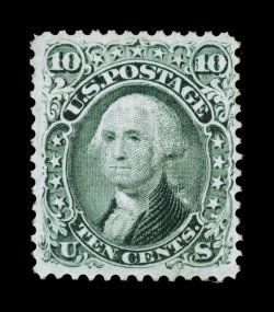 53 og 89 image#89, 10c Green, "E" grill, particularly well centered within large margins, rich luxuriant color in a deep "sage" green shade, strong impression as well, large part o.g. which is a bit redistributed, very fine; a very rare mint stamp that is missing in even the most advanced collections; 1979 and 2002 PF certificates; ex-Lessin. (Image) 5,500.00