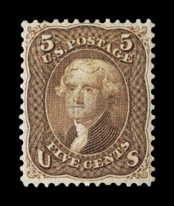 54 og 95 image#95, 5c Brown, "F" grill, exceptionally well centered mint example, with especially deep and luxuriant color, plus its impression is much stronger than usual, large part o.g. that has a bit of toning, very fine; a handsome stamp that is quite scarce this attractive; 2006 PF certificate. (Image) $3,750.00