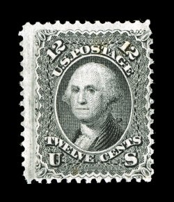 43 Ou 69 image#69, 12c Black, a marvelously choice used single that is remarkably well centered within uncharacteristically large margins, plus its color is especially deep and rich, while its impression is razor sharp on fresh paper, light cork cancel, an extremely fine used gem; 2004 PSE certificate (XF-Superb 95; SMQ $840.00). (Image) $110.00