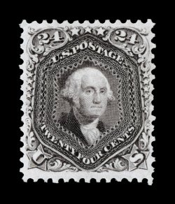 58 og 109 image#109, 24c Deep violet re-issue, the mint single offered here of this difficult re-issue is, by far, one of the freshest original gum examples we have ever seen, as this impressive stamp boasts color and impression that would rival any proof, and its paper could not be more brilliant or crisp, marvelous centering as well, with no part of the design being impinged by perforations (a rare trait on this value), remarkably clean full o.g. that has been only lightly hinged, extremely fine in every regard; easily among the finest original gum examples available of the mere 346 sold; 2001 PF certificate; ex-Stephen Brown, Hall and Lewis. (Image) $7,000.00