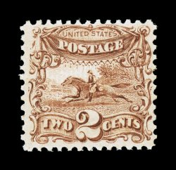 60 nh 113 image#113, 2c Brown, unusually fresh mint single with bright color on white paper, quite well centered and surrounded by full even perforations, pristine o.g., never hinged, very fine; nicely centered examples are rarely available in this pristine never hinged condition; 2007 PF certificate. (Image) for hinged $800.00