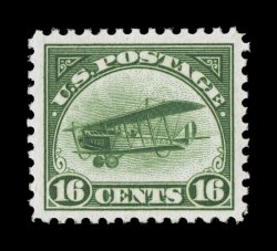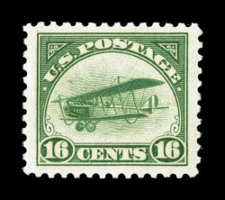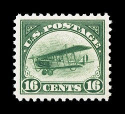 586 ogu C2 image#C2, 16c Green, an incredibly choice mint single, mathematically precise centering within large margins, deeply rich color and a razor-sharp impression, o.g., lightly hinged, superb; 2007 PSE certificate (Gem 100; SMQ $260.00 for 98); this is the highest grade the PSE has given this stamp, being one of only two to receive the outstanding Gem 100 grade. (Image) $70.00