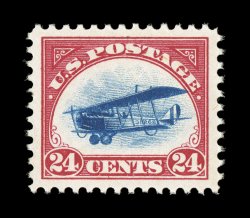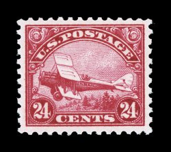 590 ogu C3 image#C3, 24c Carmine rose and blue, beautifully centered and margined, deep vibrant colors and impressions, o.g., lightly hinged, extremely fine; 2007 PSE certificate (Superb 98; SMQ $260.00). (Image) $70.00