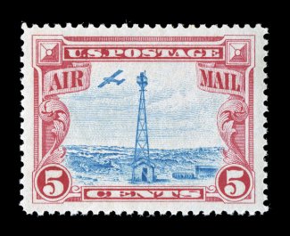 600 nhu C11 image#C11, 5c Carmine and blue, a striking mint single that is incredibly well centered within enormous margins, bright fresh colors, unblemished o.g., n.h., superb; a particularly large-margined gem; 2006 PSE certificate (Superb 98 Jumbo; SMQ $280.00 for 98); this is the highest grade the PSE has assigned to this stamp, being one of only two to receive the 98J grade. (Image) $9.50