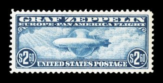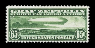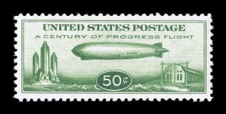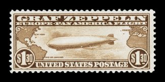 610 nhu C18 image#C18, 50c Graf Zeppelin, uncommonly well centered and margined, wonderfully bright and fresh, pristine o.g., n.h., extremely fine; 2007 PSE certificate (XF-Superb 95; SMQ $200.00). (Image) $100.00