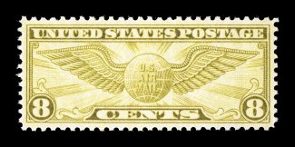 608 nhu C17 image#C17, 8c Winged Globe, perfectly centered, lovely rich color, unblemished o.g., n.h., an extremely fine gem; although this stamp is readily available, it is actually quite challenging to find in the extraordinary quality; 2007 PSE certificate (Superb 98; SMQ $500.00); the sole example to receive this grade, the highest awarded to date for this stamp. (Image) $4.00