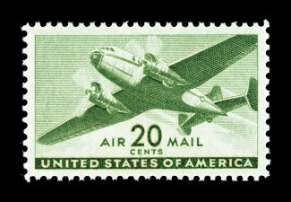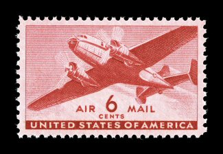 611 nhu C25 image#C25, 6c Carmine, outstanding centering within wide margins, deep vibrant color, o.g., n.h., extremely fine gem; 2007 PSE certificate (Superb 98; SMQ $200.00); this is the highest grade the PSE has given this stamp. (Image) $0.20