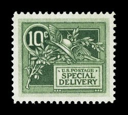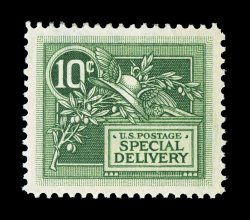 619 nhu E7 image#E7, 10c Green, choice mint single, exceedingly well centered within uncharacteristically large margins, deep rich color and a well defined impression, pristine o.g., n.h., extremely fine; 2004 PSE certificate (XF-Superb 95; SMQ $840.00). (Image) $150.00