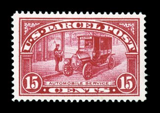 663 nhu Q7 image#Q7, 15c Parcel Post, a striking mint example that possesses enormously large margins all around and is incredibly well centered within these wide borders, plus its color is truly radiant and its impression well incised, o.g., n.h., an extremely fine gem; 2002 PF certificate and a 2006 PSE certificate (XF-Superb 95 Jumbo; SMQ $1,300.00 for 95 and $2,950.00 for 98). (Image) $180.00