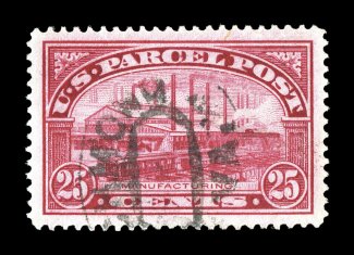 665 Ou Q9 image#Q9, 25c Parcel Post, a striking used single that is impeccably well centered within exceedingly large and well balanced margins, brilliantly rich color, double oval pmk., extremely fine gem; 2004 PSE certificate (Superb 98 Jumbo; SMQ $240.00); the highest graded copy of this stamp (mint or used) and the sole example to reach Superb 98J status. (Image) $8.50