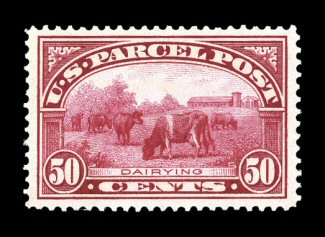 666 nh Q10 image#Q10, 50c Parcel Post, exceptionally well centered within uncharacteristically large margins, strong rich color and a crisp impression, unblemished o.g., n.h. (recent certificate states "never hinged, with minor adhesive specks on the gum", extremely fine; clear 2000 PF certificate and a 2006 PSE certificate. (Image) $700.00