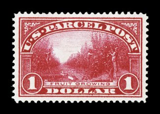 671 nhu Q12 image#Q12, $1.00 Parcel Post, a magnificent quality mint example, featuring several extraordinary and eye-arresting physical attributes, including being perfectly centered amid lavishly large margins, plus its color could not be more radiant nor its impression more deeply etched, unblemished o.g., n.h., extremely fine gem; 2002 PSE certificate and a 2006 PSE certificate (XF-Superb 95; SMQ $4,650.00). (Image) $850.00
