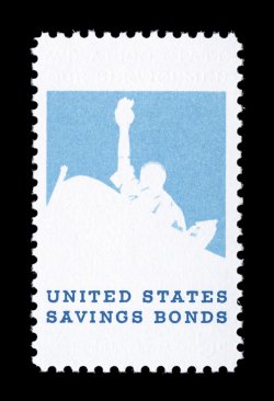 804 nh 1320b image#1320b, 5c Savings Bond-Servicemen, red, dark blue and black omitted, an impressive mint single of this dramatic color missing error, well centered, bright and fresh, o.g., n.h., very fine; one of the premier missing color errors in existence, as only a mere six examples are known; 1996 PF certificate (top sheet-selvage subsequently removed). (Image) $4,250.00