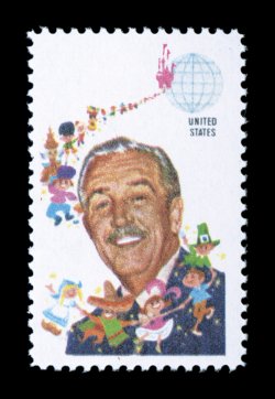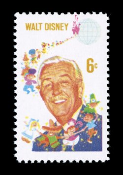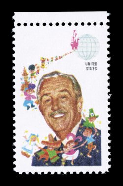 811 og 1355d image#1355d, 6c Walt Disney, black omitted, well centered, bright colors, o.g., l.h., very fine; a rare error, with only 35 examples reported; 1974 APS certificate. (Image) $2,000.00
