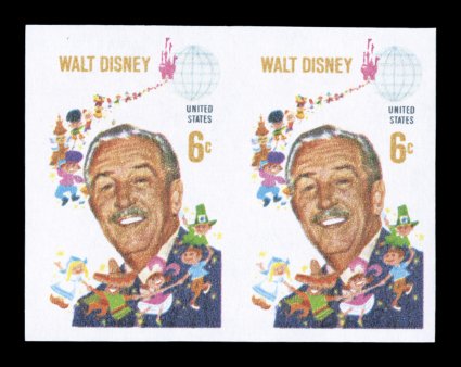 810 nh 1355c image#1355c, 6c Walt Disney, imperforate, horizontal pair, large margins all around, o.g., n.h., extremely fine. (Image) $550.00
