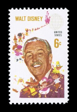 812 nh 1355f image#1355f, 6c Walt Disney, blue omitted, an exceptionally choice mint example of this rare error, outstanding centering, o.g., n.h., extremely fine; only 35 examples have been recorded. (Image) $2,000.00