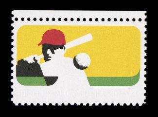 816 nh 1381a image#1381a, 6c Baseball, black (engraving) omitted, top sheet-margin single, o.g., n.h., a very fine example of this popular error. (Image) $850.00