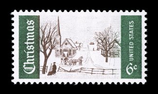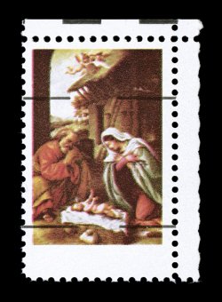 819 nh 1414c image#1414c, 6c Christmas, Blue omitted, top right corner margin single, o.g., n.h. (tiny spot on gum), very fine and rare, as only 15 examples reported; 1990 PSE certificate. (Image) $1,500.00