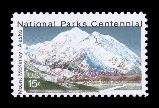 837 nh 1454b image#1454b, 15c Mount McKinley, yellow omitted, the unique example of this color omitted error, with the yellow completely missing and some of the other colors misregistered, o.g., n.h., very fine; clearly one of the great modern error rarities, as no other examples have ever been recorded; 1991 PF certificate. (Image) $5,750.00